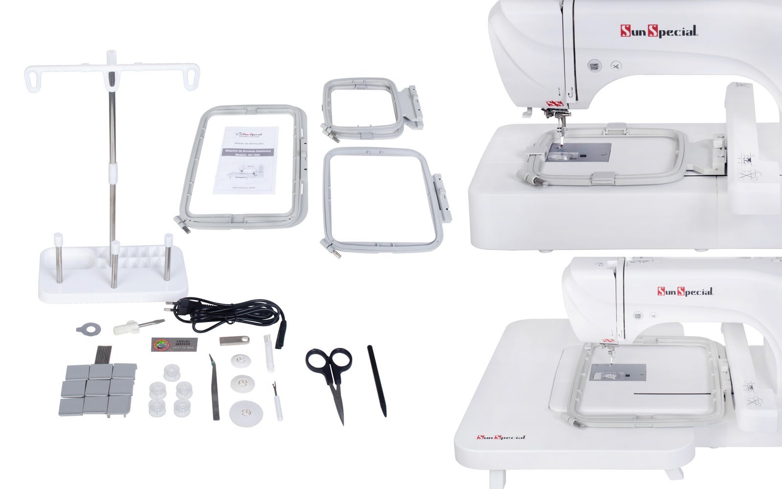ComposiçãoMáquina Costura E Bordado Doméstica Ss-1500 Autovolt Eletrônica Branca – Sun Special